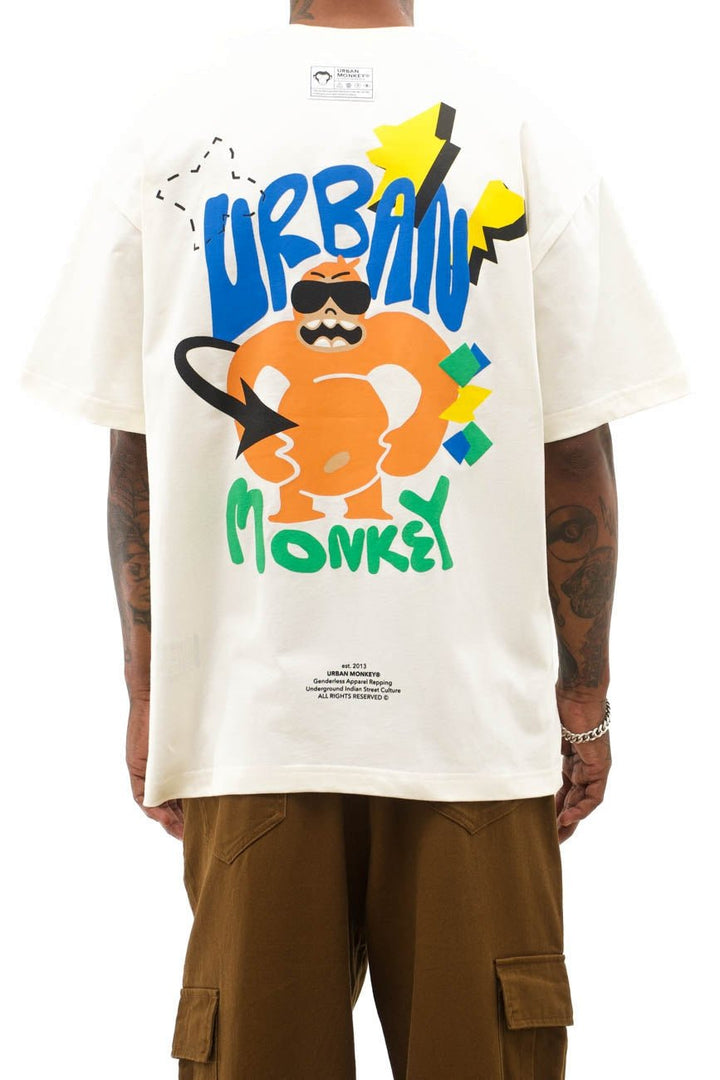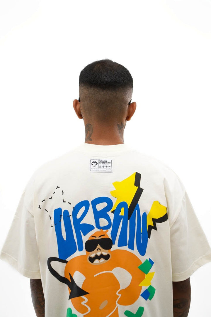 Communicating our brand’s philosophy and encouraging you to break free from societal norms, this Anti-Monkey oversize t-shirt by Urban Monkey in off-white is designed for those who refuse to conform. The front displays our esteemed year of establishment, proudly representing the legacy and experience behind the brand. Turning heads as you walk away, the back features a large-scale anti-monkey graphic. It sure commands attention.