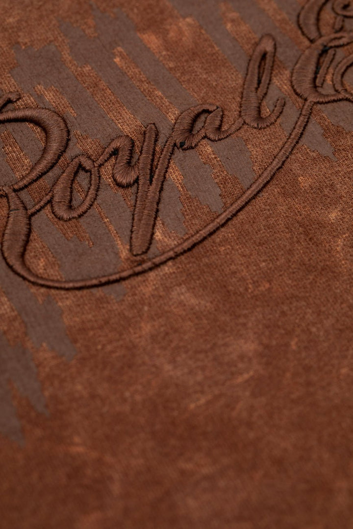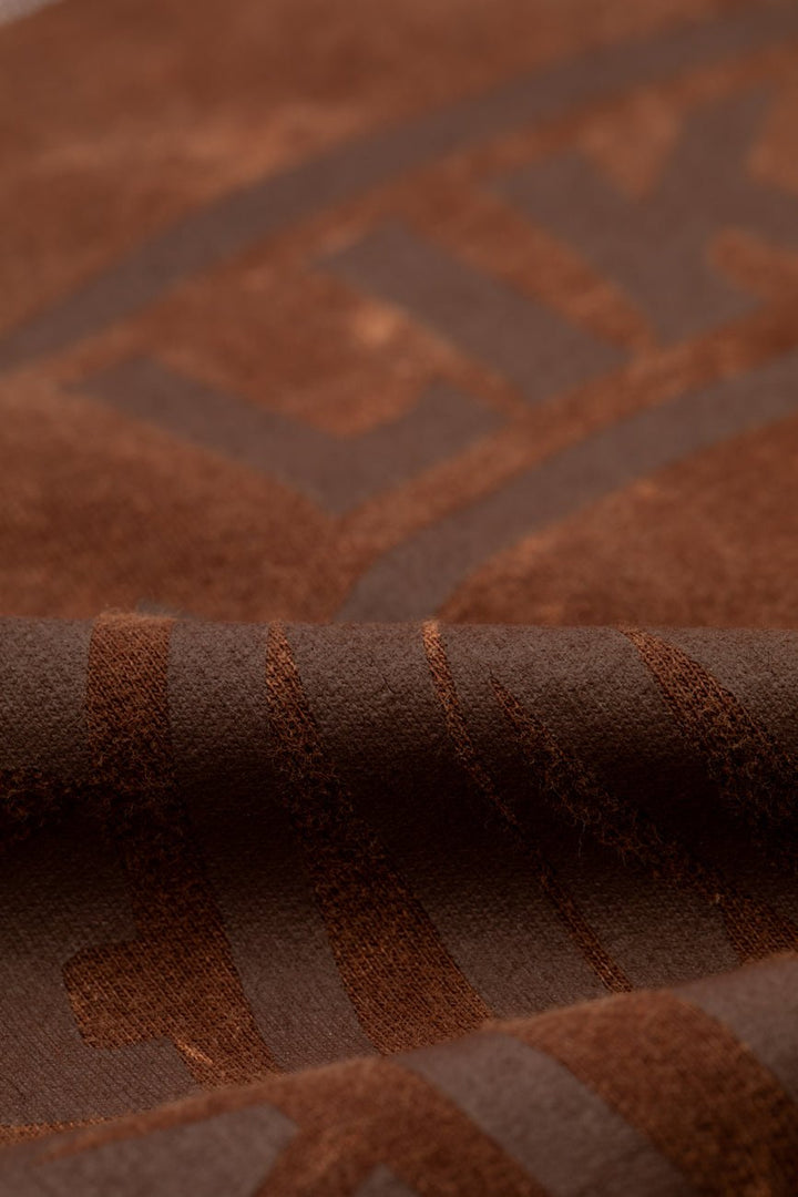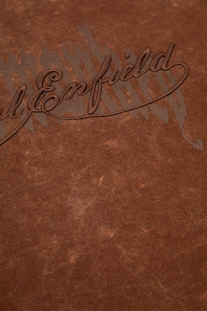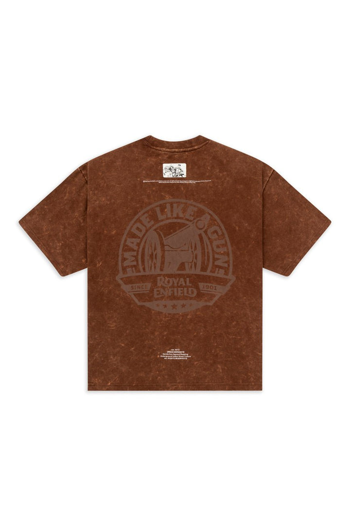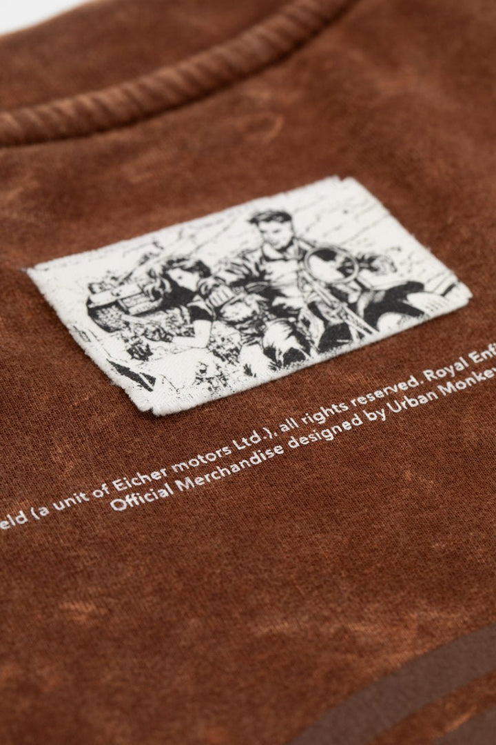 Royal Enfield X Urban Monkey Cloud Fade Tee – Brown. Oversized, unisex fit crafted from premium Loop Knit French Terry at 240 gsm, delivering a soft, breathable feel. Featuring a unique cloudy fade finish for a distinct, worn-in look with bold graphics on the front and back. Finished with a subtle patch label and proudly made in India, this tee blends elevated style with ultimate comfort.