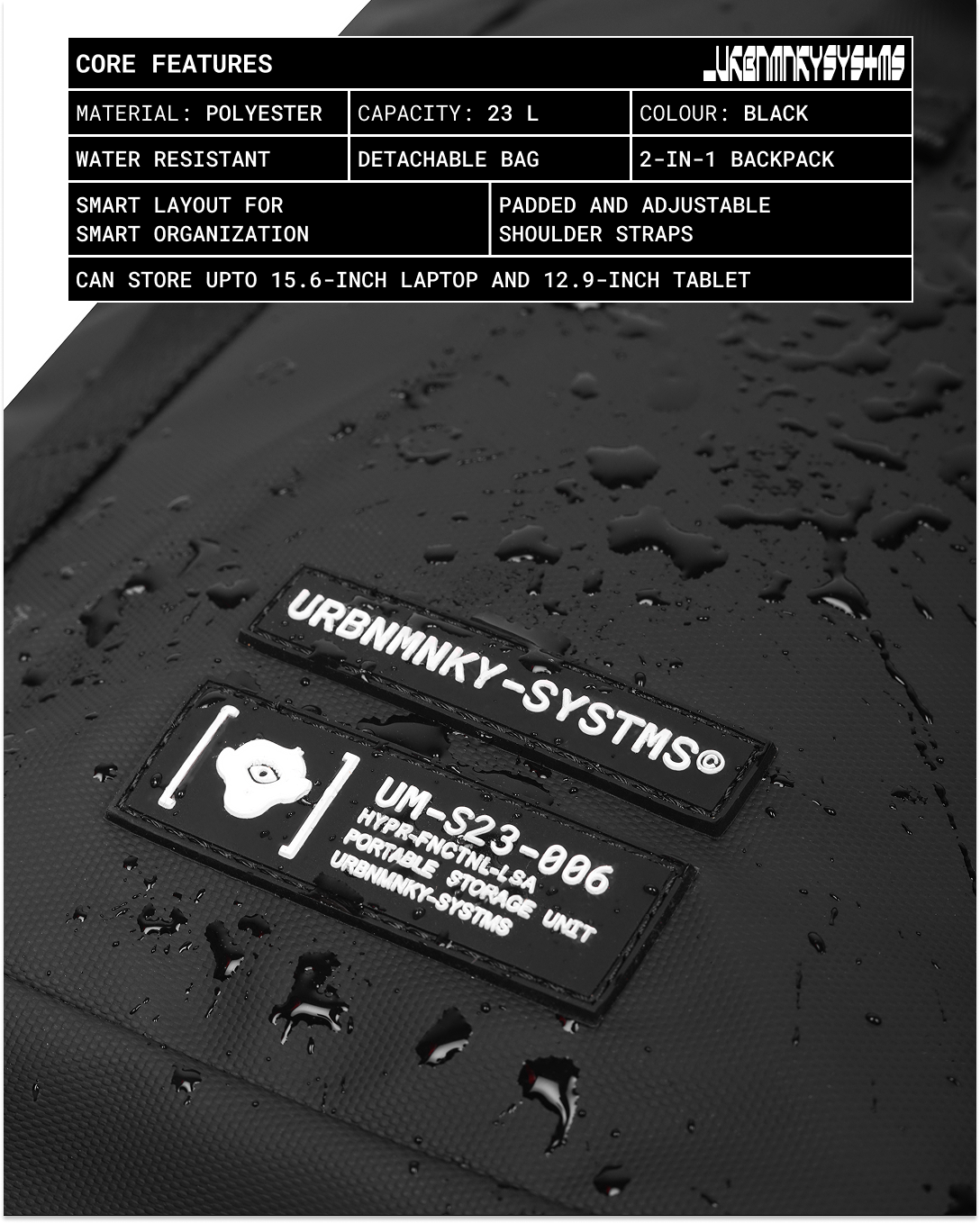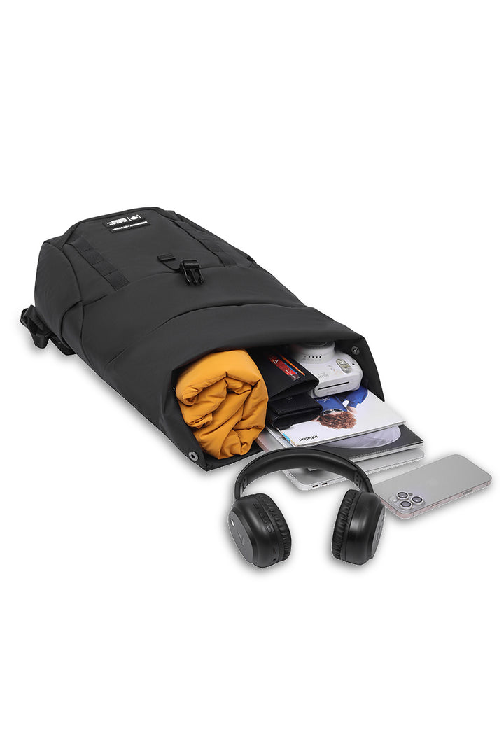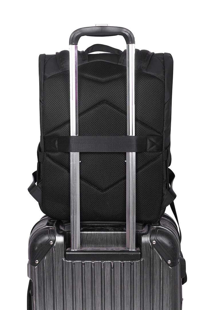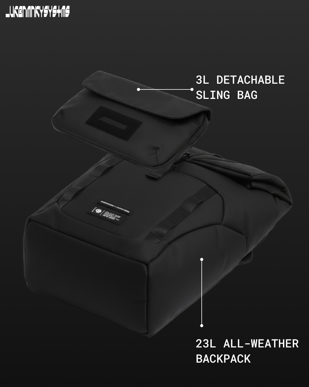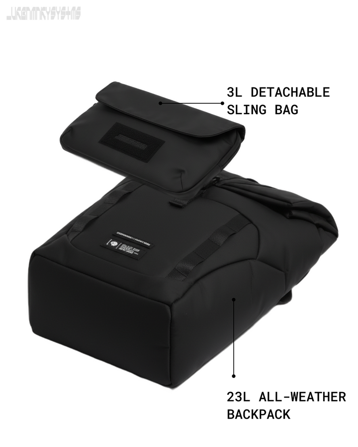 Each feature is designed with purpose: weather-resistant shell for unexpected turns, laptop sleeve for constant work-in-motion, trolley strap for quick transitions. Every module, pocket, and fold exists to optimize your motion. From the city grid to the airport lane, this system keeps your essentials within reach and your silhouette clean. Use it as a full-load travel backpack or detach the front sling for everyday runs.