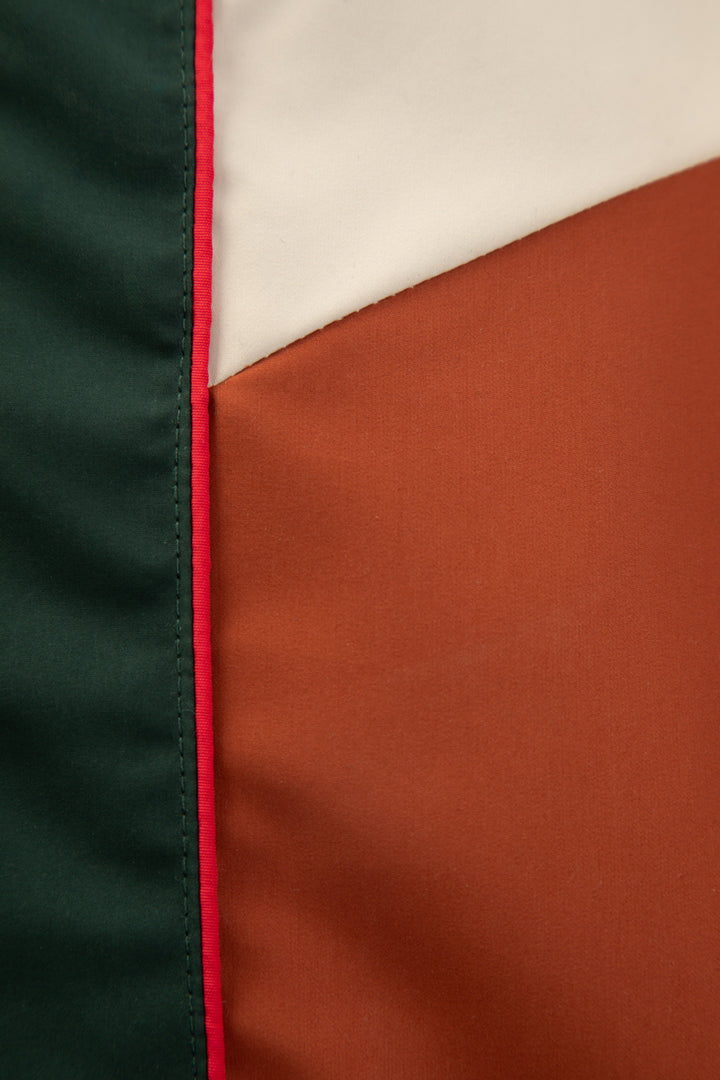 Inspired by the understated glamour of Monte Carlo, this jacket merges sport and sophistication in one clean, commanding silhouette. Its cream, rust, and forest green color-block design throws back to old-money athleticism. Tailored for post-game martinis, midnight poker, and effortless cool. No loud logos. No try-hard details. Just the perfect balance of leisure and legacy.