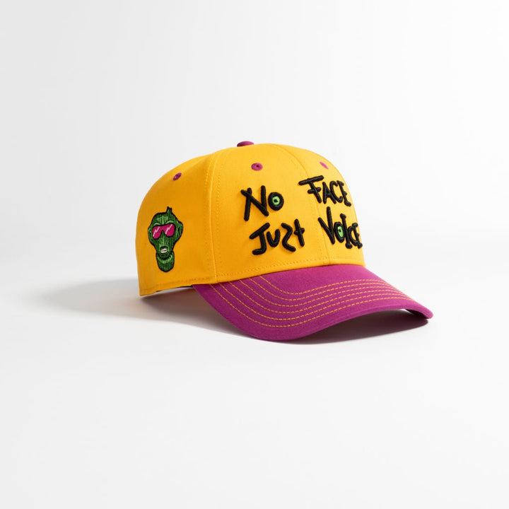 Crafted in golden yellow with a purple brim, let this Urban Monkey embroidered baseball cap with an adjustable strap back remind that when the whole world is silent, even one voice becomes powerful.