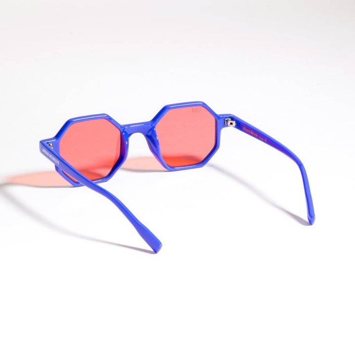 Full-rimmed, lightweight, round sunglasses with a blue finish, the red tints on these frames make anyone an instant badass.