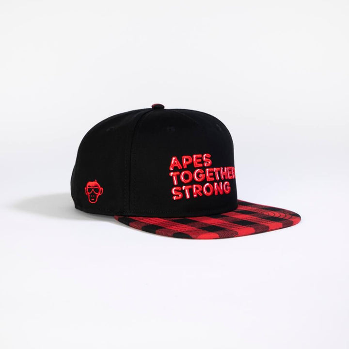 Not all heroes are humans. Apes together strong. Featuring a jet black crown with high definition embroidery and a checkered brim, let this snapback serve as a reminder to stand tall and strong together.