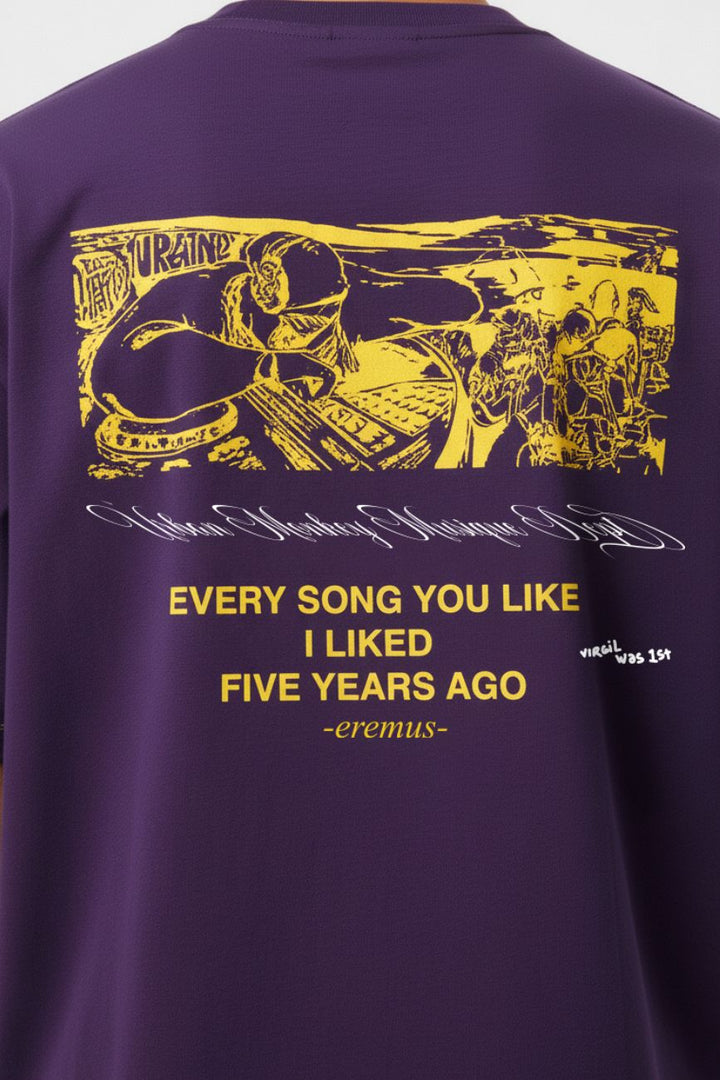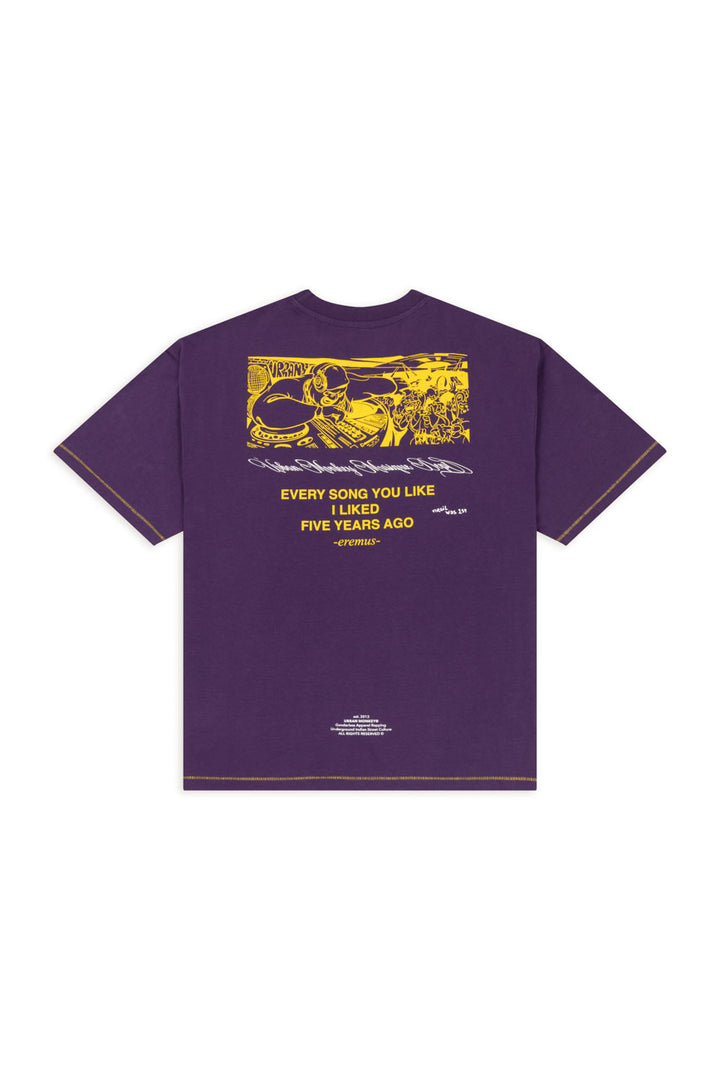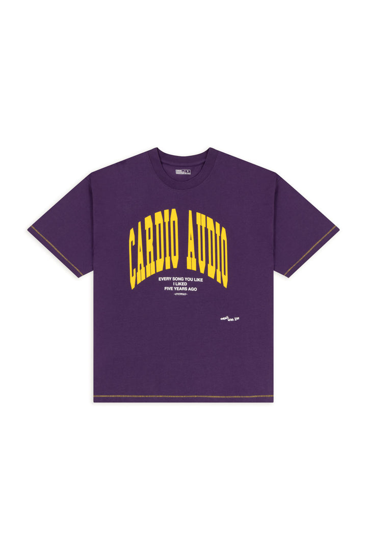 The Cardio Audio Tee is for the ones who never stop chasing that sound. The back graphic sets the scene — monkey DJ spinning while the words read: “Every song you like, I liked 5 years ago.” It’s part flex, part feeling, and a nod to everyone who’s always ahead of the vibe. Made from 100% cotton in a dark purple, this tee wears like a mixtape of your best nights being bold, nostalgic, and impossible to skip.