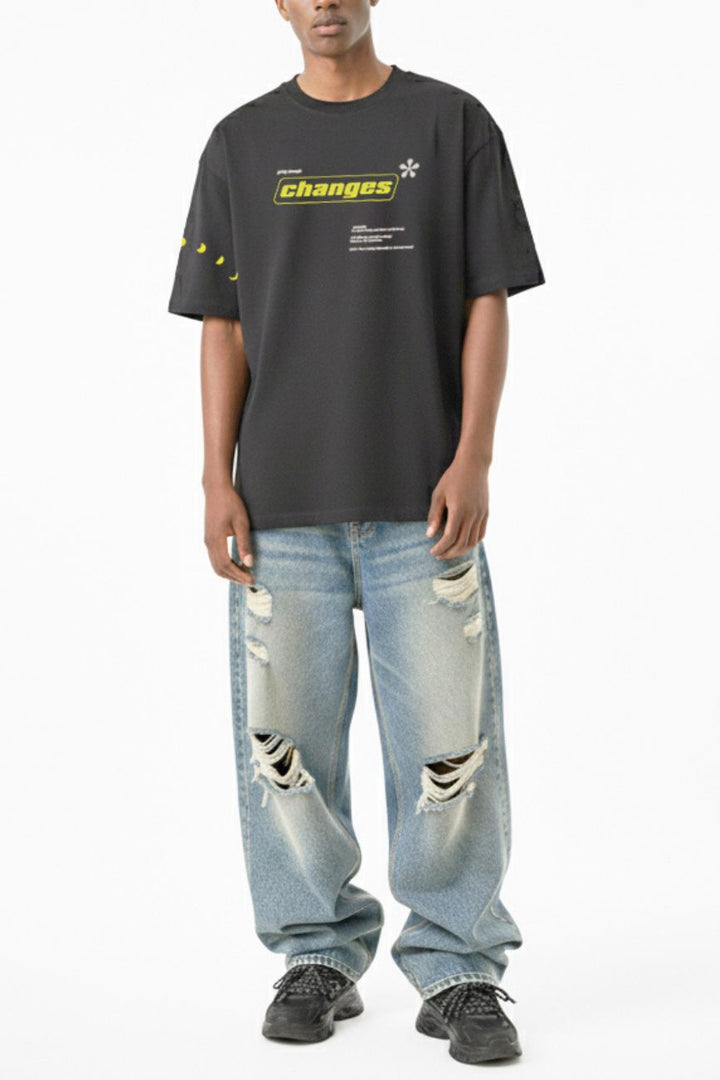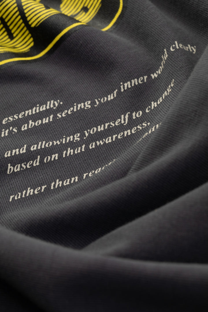The Changes Tee is a reminder that real growth starts within. Its message is simple but powerful — see your inner world clearly, stay aware, and let yourself change on your own terms. It’s about choosing mindful evolution instead of just reacting to whatever life throws at you. The bold prints on the front, back, and sleeves carry the thought forward, while the oversized fit keeps it easy and street-ready.