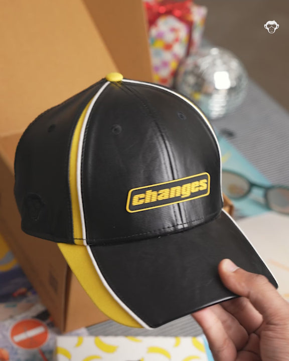 This baseball cap features a high-impact black and yellow contrast panel build crafted from premium pu for a smooth, structured finish. The graphic sits front and centre as a reminder that evolution is constant. Designed with a curved brim, sweat-resistant cotton sweatband, and adjustable UM-branded buckle strap.