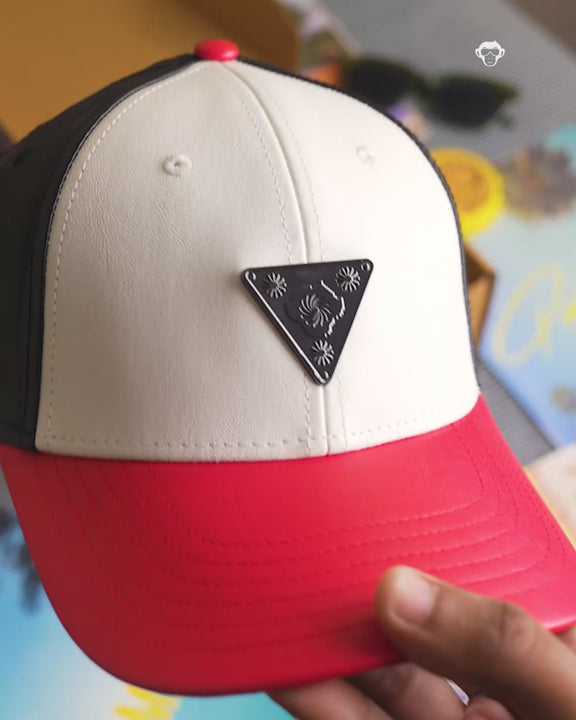 Built for the fast lane. Crafted in faux leather with bold three-colour panelling, the cap features our signature metal badge for a sharp focal point. The structured crown holds form, while the cotton sweatband ensures comfort through long wear.