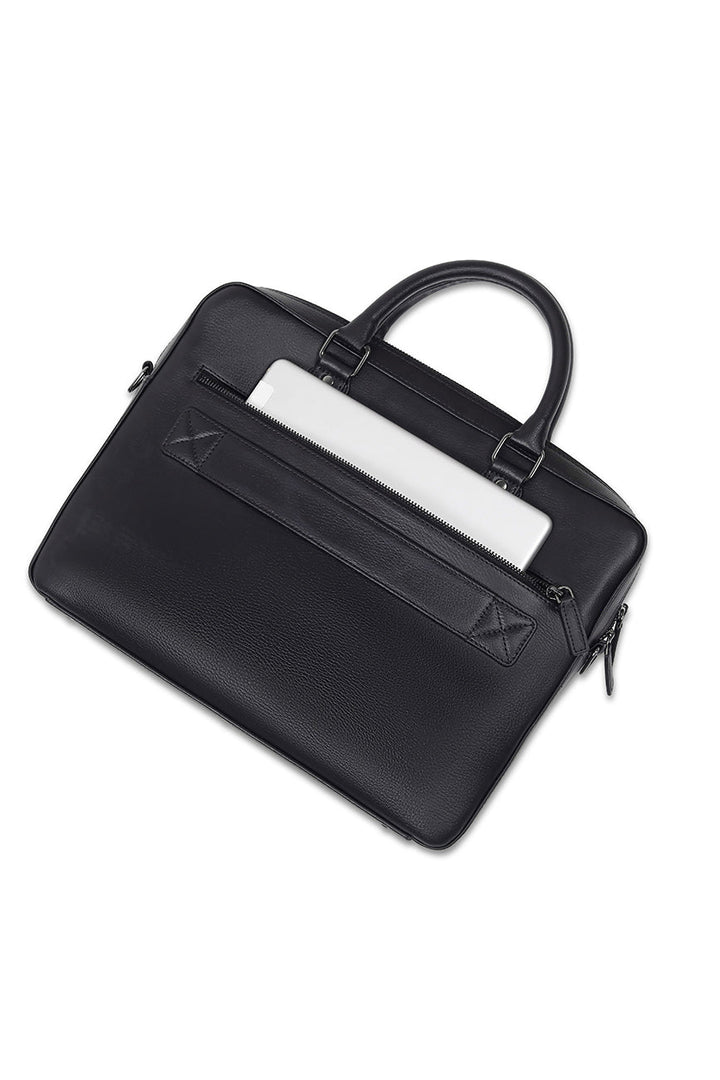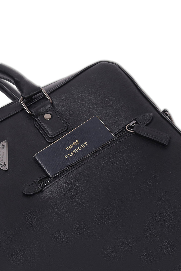 Introducing Urban Monkey’s first-ever laptop bag — a sleek, all-black, vegan design crafted from premium PU for a modern and sustainable touch. Perfectly blending style and functionality, this bag is your ultimate work companion. Designed with robust storage solutions, it features a secure laptop compartment, three internal slip pockets for organizing cables and adapters,a zippered compartment for your ipad, kindle or important documents and a spacious main compartment for everything else. A zippered front and back pocket offers quick access to essentials. Carry it your way using the rolled-edge ergonomic handles or the detachable crossbody strap. Travel with ease using the trolley sleeve for seamless mobility. Smartly designed with careful dimensions, this laptop bag ensures generous storage and effortless versatility for your daily hustle. Designed to accommodate laptops of various sizes, fits any laptop of up to 15’’(measured diagonally) or 13’’(measured horizontally).