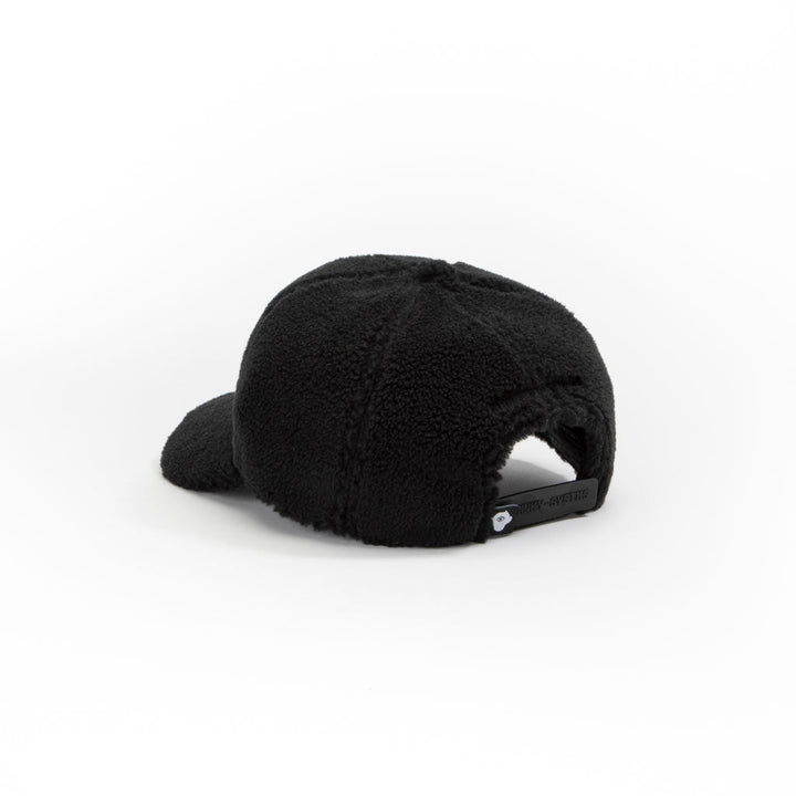A cozy faux-fur build in all-black, finished with a sleek silicon label up front for a subtle flex. This black baseball cap is made from durable cotton for comfort, with an adjustable UM-branded buckle strap for a custom fit.