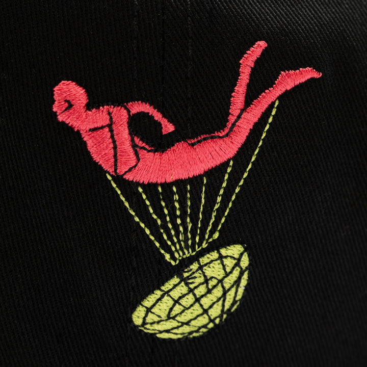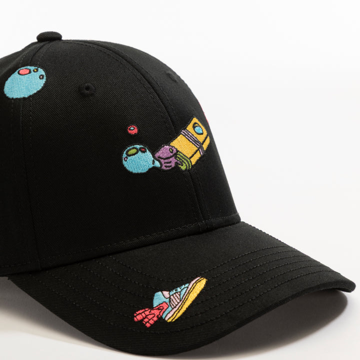 The Paradise Orbit Cap takes the story of our Paradise Tee and reworks it into a crown for your head. On a black cotton base, tiny embroidered fragments float like thoughts in space — planets, boards, and satellites of meaning. Each motif is a world of its own, scattered yet connected, mapping out the contradictions we live with. It’s a cap that carries the same paradox: playful but sharp, light but heavy with detail. Built to ground you, yet always pointing you skyward.