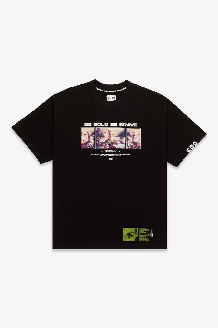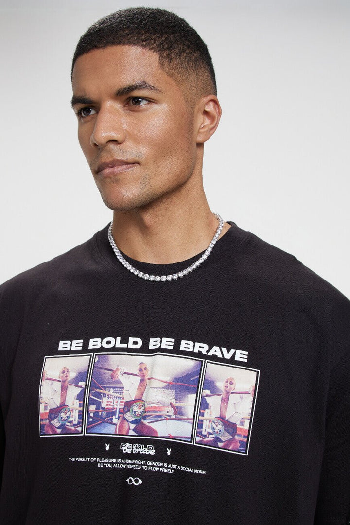 In this bold black tee, we feature Vendela Linblom's photograph for Playboy. The first Playboy Playmate with a shaved head, Lindblom wants to break down preconceived notions of what it means to have a shaved head. You may recognize her from the videogame Battlefield 1, where she posed as a model for the game's first multiplayer female character. Take risks to get where you want to be in life. Be bold, be brave.