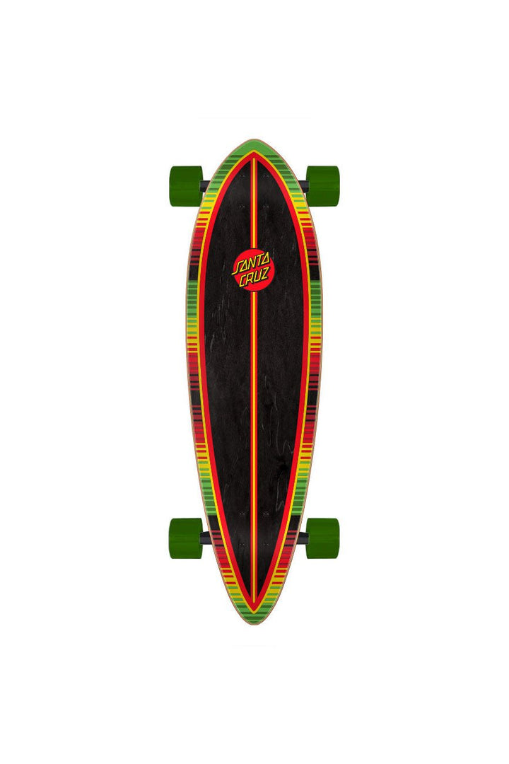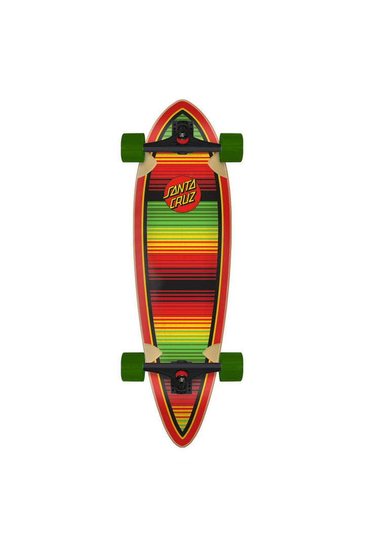 Santa Cruz Skateboards Serape Dot Pintail Longboard Cruzer featuring updated, smaller pintail shape on 9 ply deck with Bullet 160mm reverse kingpin trucks and Santa Cruz branded 60mm 78a Slimeballs wheels.