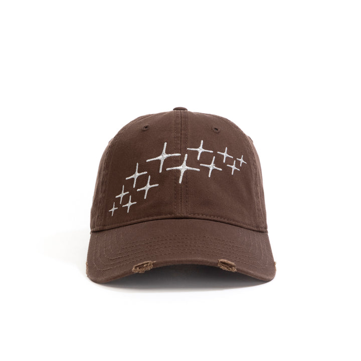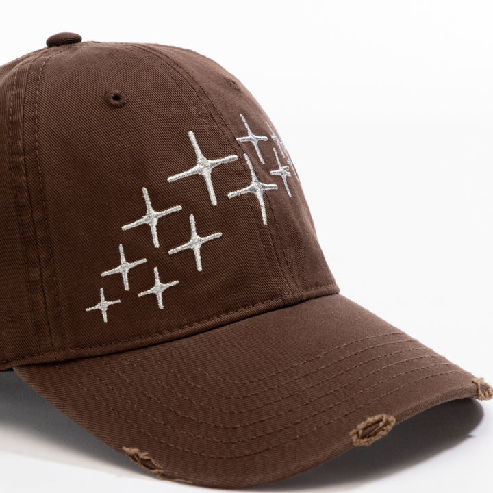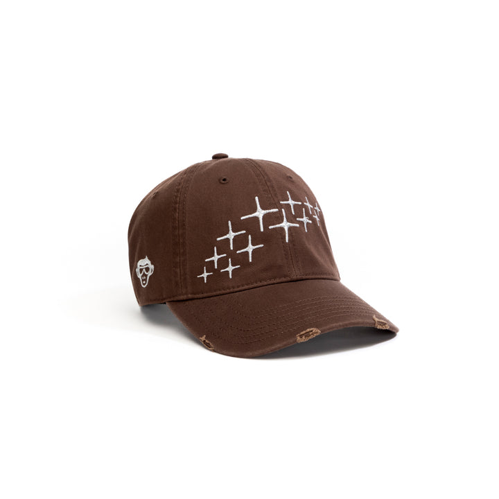 Starline is for nights that don’t end when the streetlights flicker on. Stitched with star embroidery across the crown, it feels like carrying a skyline on your head. Built in 100% cotton with a structured shape and a distressed brim, it balances polish with edge. The rich brown tone keeps it versatile, while the UM bronze buckle at the back locks in the fit.